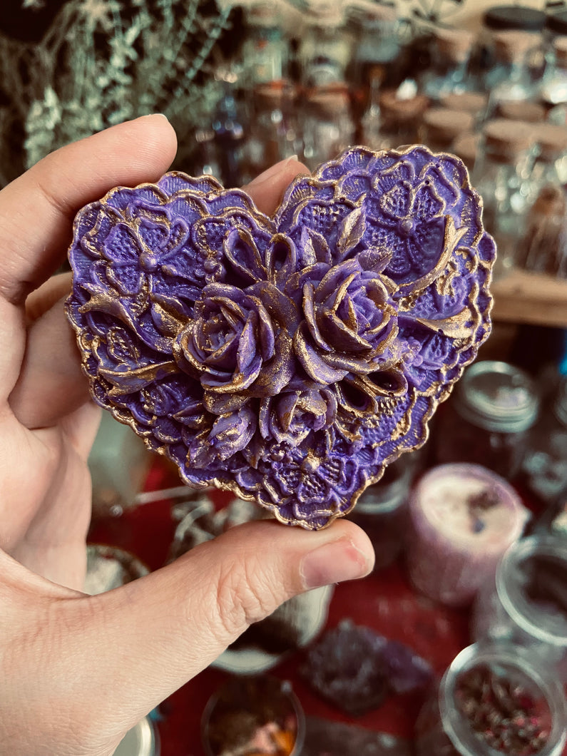 Lavender Sweetheart Soap with hand painted Gold Leafing